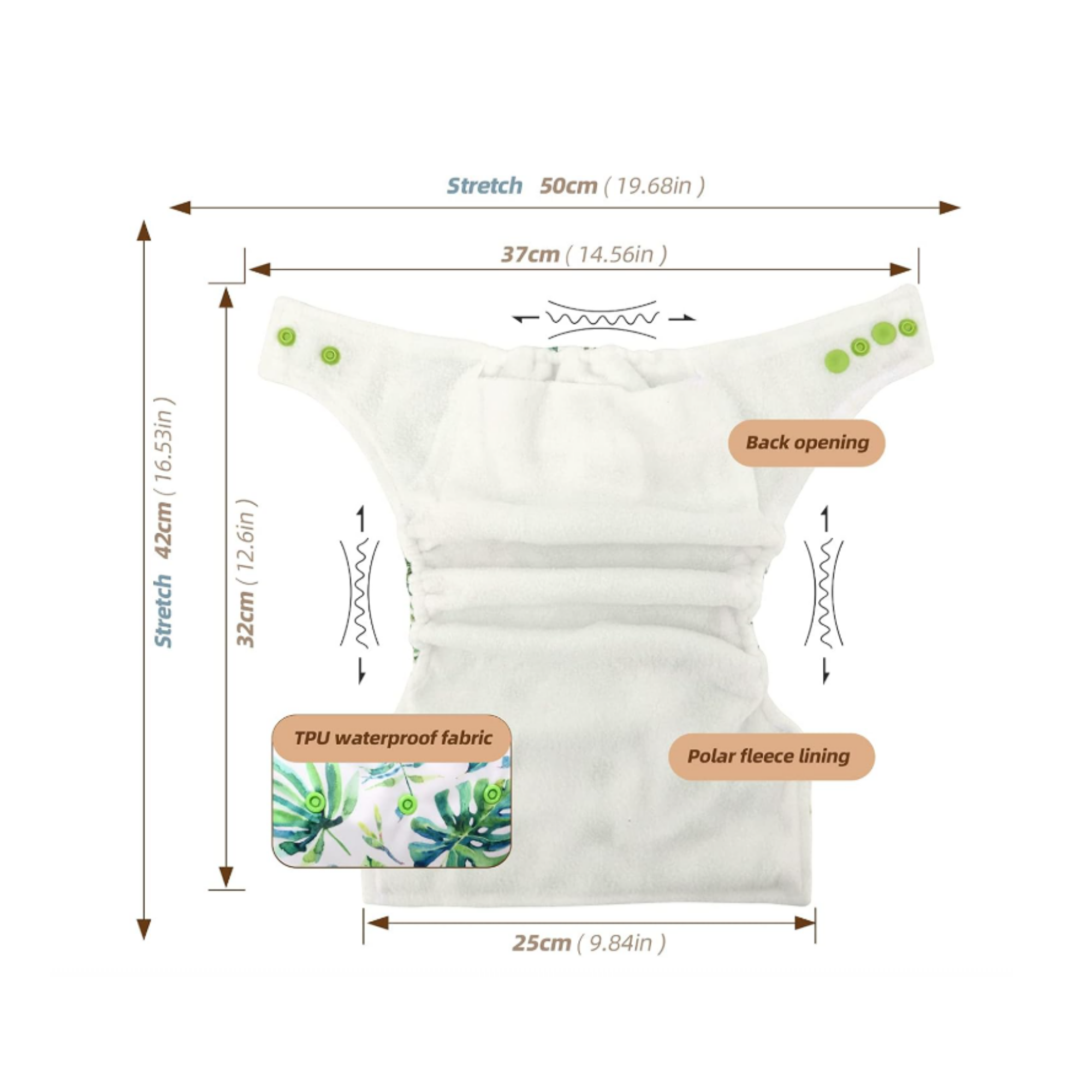 Roomy back pocket opening make it super easy to stuff your inserts - giving you access to increase your desired absorbency where it matters the most to you and your baby.