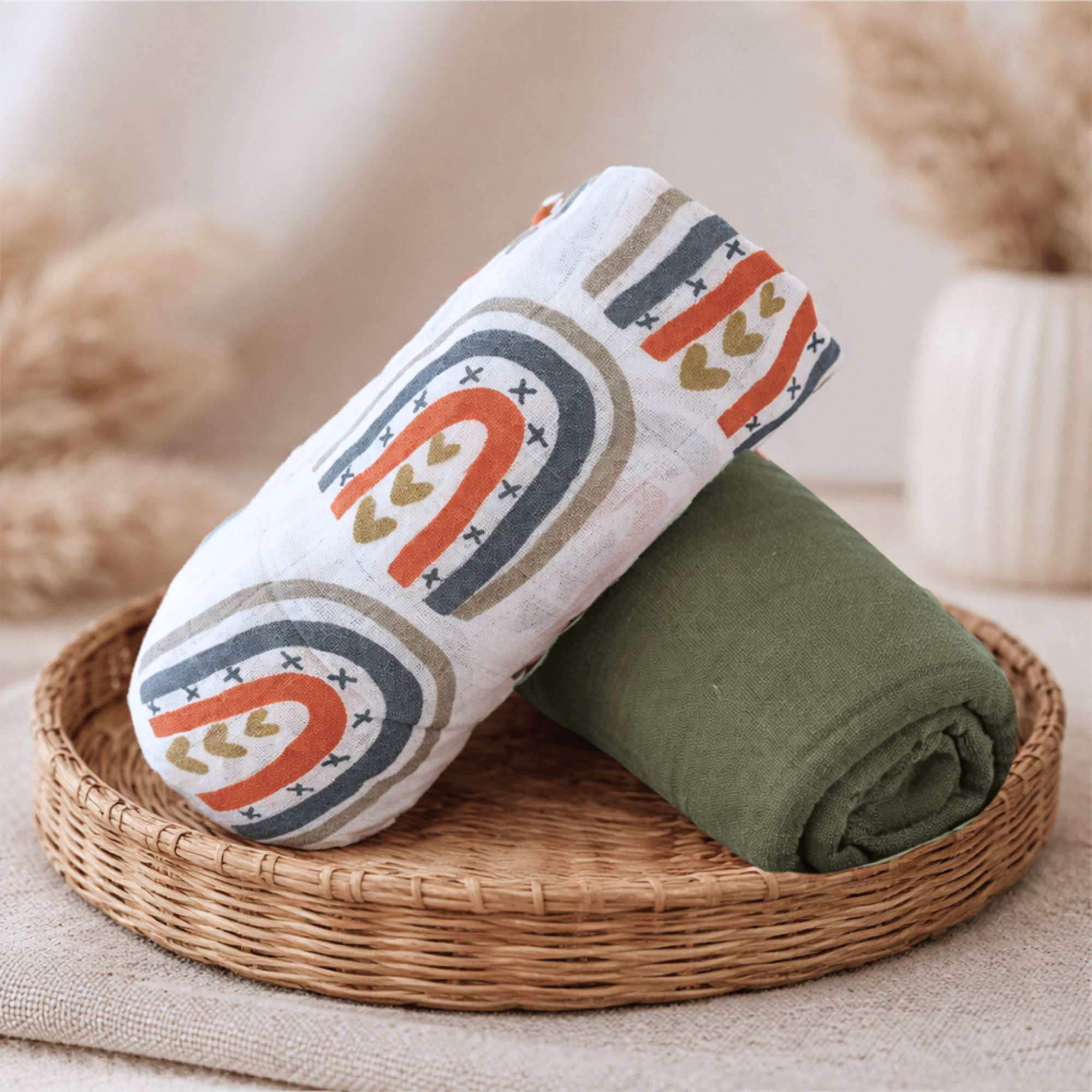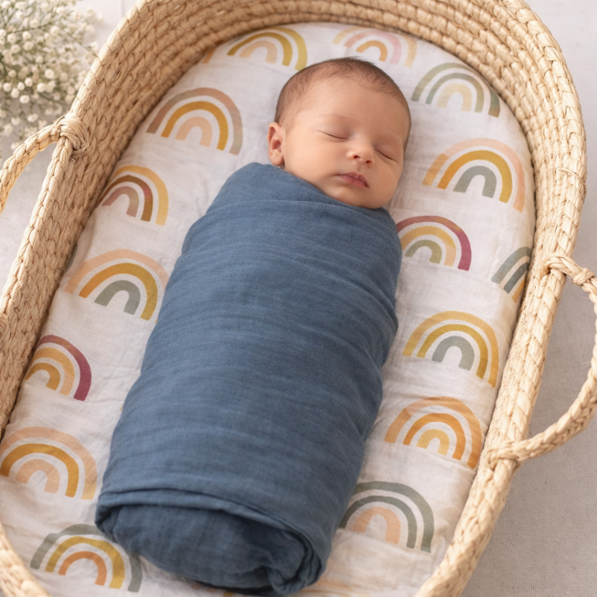 Shop Baby GiftsKeep your newborn cozy, comfortable, and stylish with our Muslin Swaddle Wraps & Bassinet Sheets Twin Pack. Made from 100% premium cotton, these versatile swaddles are gentle on sensitive baby skin and perfect for swaddling, bassinet sheets, tummy time, breastfeeding covers, pram covers, and more.