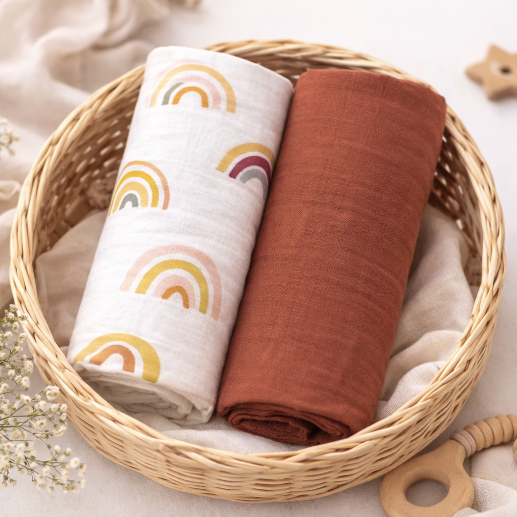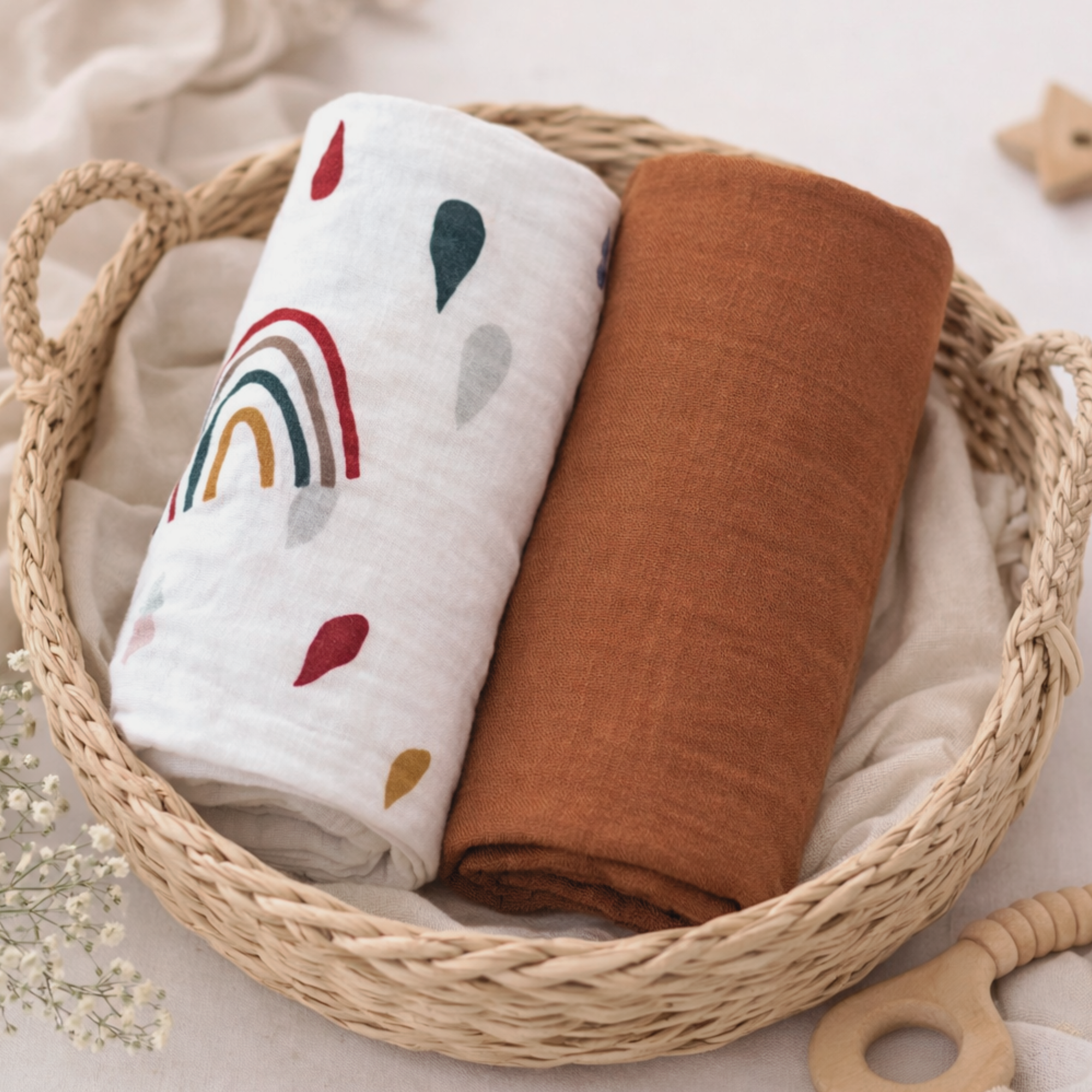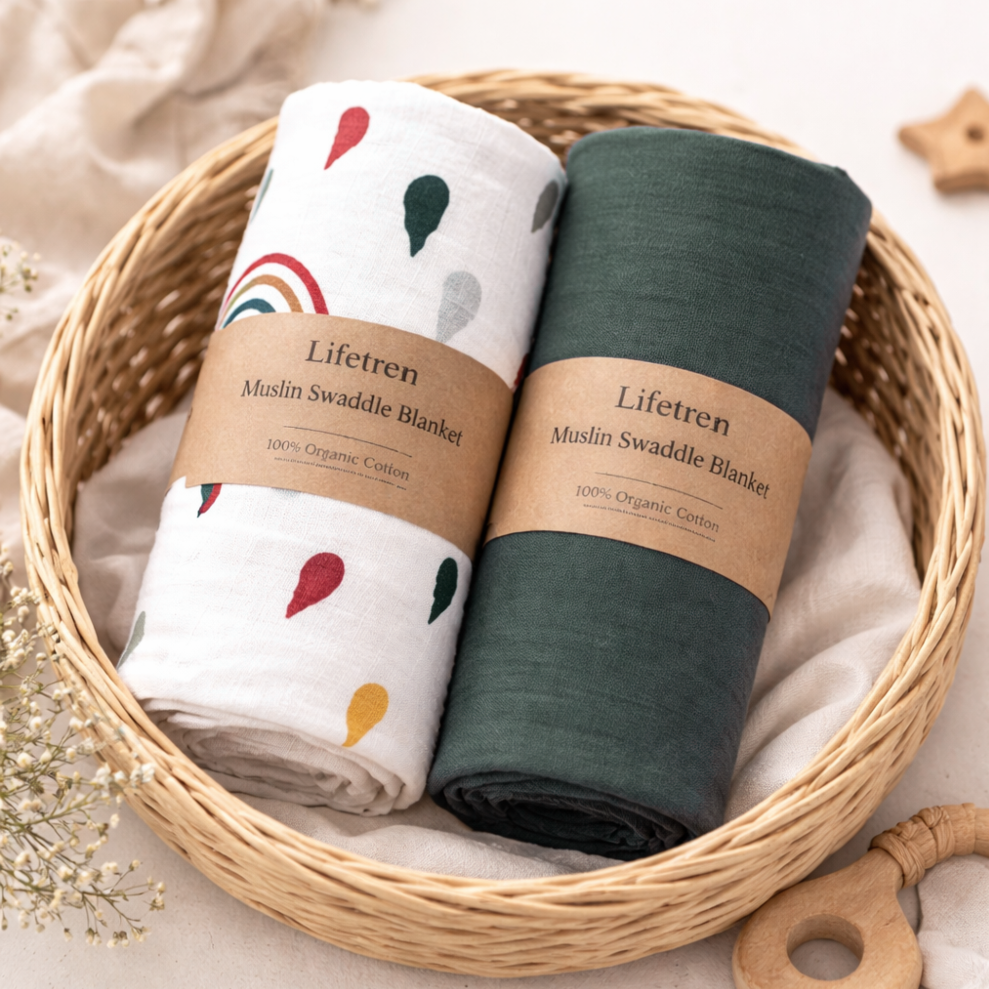 These muslin swaddle wraps are a newborn essential, helping your baby sleep better while providing comfort and security. A must-have for every nursery, they’re easy to wash, durable, and designed to last.